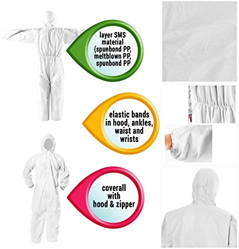 ABC Disposable Coveralls with Hood for Men, Women Hazmat Suits Disposable, 55G Poly Disposable Coverall Suit with Zip-Front
