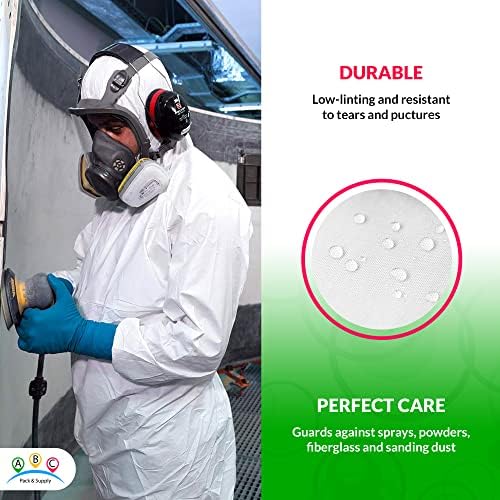 ABC Disposable Coveralls with Hood for Men, Women Hazmat Suits Disposable, 55G Poly Disposable Coverall Suit with Zip-Front
