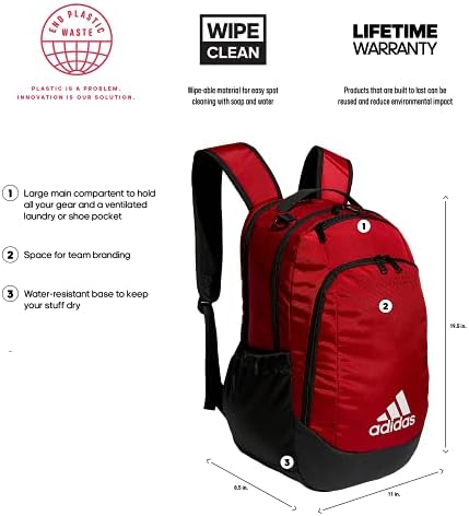 Carry everything you need for practice or the gym in this adidas backpack. the sturdy backpack has a main compartment and a separate ventilated shoe garage for wet or muddy items. the inner lining is easy to wipe clean with soap and water.