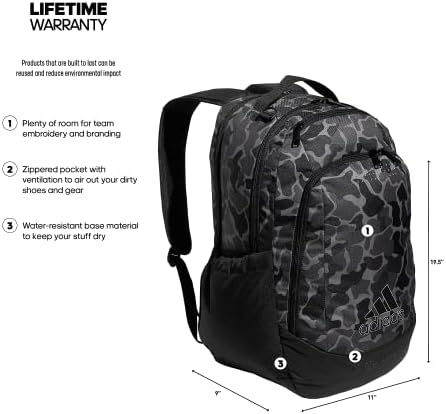 Carry everything you need for practice or the gym in this adidas backpack. the sturdy backpack has a main compartment and a separate ventilated shoe garage for wet or muddy items. the inner lining is easy to wipe clean with soap and water.
