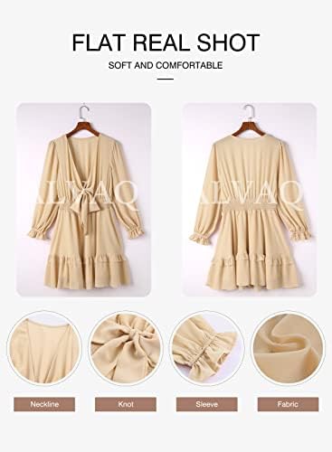 Merkmale: Vintage-Kleid, einfarbig, Blumendruck, sexy tiefer V-Ausschnitt, ausgeschnittenes Knotenband, lange Puffärmel, hohe Taille, A-Linien-Silhouette, kurze Knielänge, lässig, Bohemian, fließendes Strandkleid.