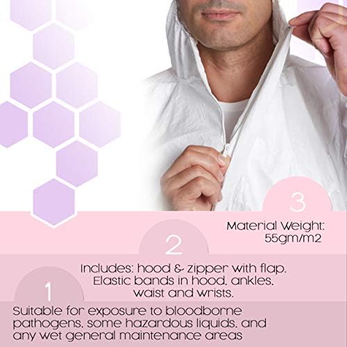 AMZ Medical Supply Hazmat Suits Disposable Coveralls. Pack of 5 Painters Suits 3X-Large Dust Protective Hooded Coveralls, Paint Suit, Protective Suits. 55G Microporous Coveralls for Spray Painting