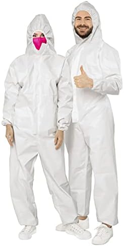 AMZ Medical Supply Hazmat Suits Disposable Coveralls. Pack of 5 Painters Suits 3X-Large Dust Protective Hooded Coveralls, Paint Suit, Protective Suits. 55G Microporous Coveralls for Spray Painting