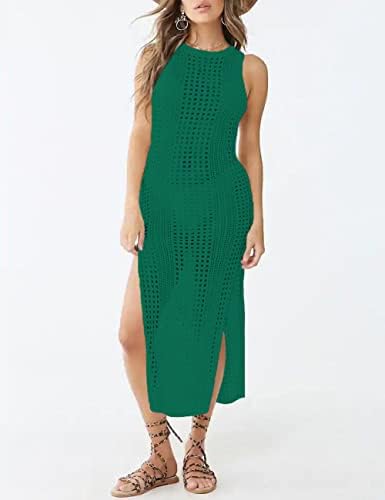 Bsubseach Crochet Cover Ups for Women Hollow Out Sleeveless Bikini Swimsuit Swimwear Side Split Long Beach Dresses