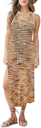 Bsubseach Crochet Cover Ups for Women Hollow Out Sleeveless Bikini Swimsuit Swimwear Side Split Long Beach Dresses