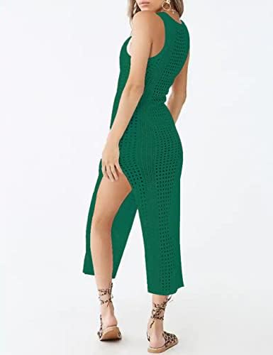 Bsubseach Crochet Cover Ups for Women Hollow Out Sleeveless Bikini Swimsuit Swimwear Side Split Long Beach Dresses