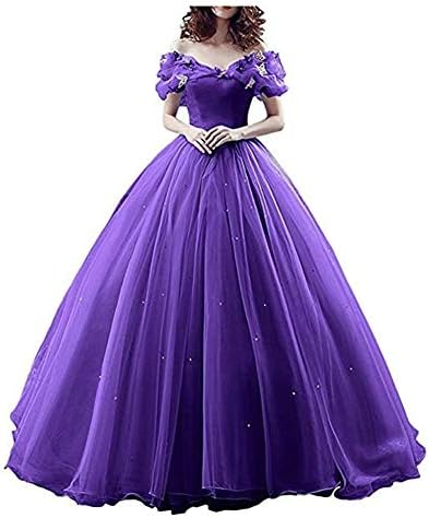 • Eigenschaften: Ballkleid mit Puffärmeln, Tüll, Herzform, Ballkleid, lang, bodenlang, verstellbare Korsettschnürung am Rücken, eingebauter BH, Prinzessinnenpartykleider, schulterfrei, Abendkleid, lang, A-Linie, offener Rücken.