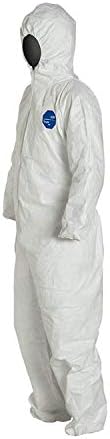 DuPont TY127S Disposable Elastic Wrist, Ankle & Hood White Tyvek Coverall Suit 1428, Size Large, Sold by the Each