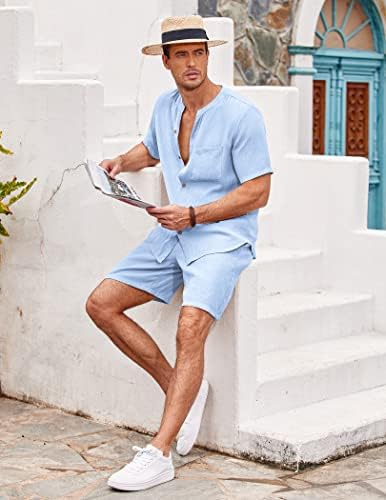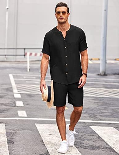 Lounge-Set: lockere und entspannte Passform, Pyjama-Set, Baumwoll-Leinen-Set, Strand, 2-teilig, lässige Sommer-Outfits, Hemden und Shorts, Loungewear-Set, zum Schlafen/Lounging/Hochzeit/Pyjama-Party/Loungewear/Flitterwochen/Hotel/Urlaub. Perfektes Geburtstags-, Weihnachts- und Jahrestagsgeschenk für Ihren Ehemann, Vater, Sohn oder Freunde