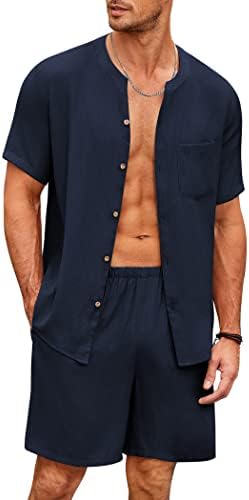 Lounge-Set: lockere und entspannte Passform, Pyjama-Set, Baumwoll-Leinen-Set, Strand, 2-teilig, lässige Sommer-Outfits, Hemden und Shorts, Loungewear-Set, zum Schlafen/Lounging/Hochzeit/Pyjama-Party/Loungewear/Flitterwochen/Hotel/Urlaub. Perfektes Geburtstags-, Weihnachts- und Jahrestagsgeschenk für Ihren Ehemann, Vater, Sohn oder Freunde