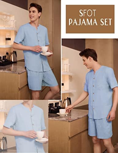 ?Funktionales Pyjama-Set: Dieses 2-teilige Herren-Sommer-Shorts-Set aus Baumwoll-Leinen, kühl und weich, geeignet für Nachtwäsche/Nachtwäsche/Loungewear zu Hause, kann aber auch am Strand/Yoga/Sport/Jogger/Urlaub/Outdoor/Sport/Straße/lässige Alltagskleidung getragen werden