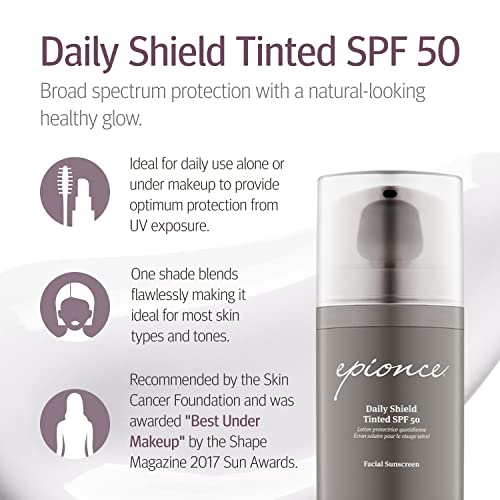 Epionce Daily Shield Tinted SPF 50 Sunscreen, Tinted Moisturizer and Face Sunscreen, Anti Aging Facial Sunscreen, Tinted Sunscreen with Argan Oil and Zinc Oxide
