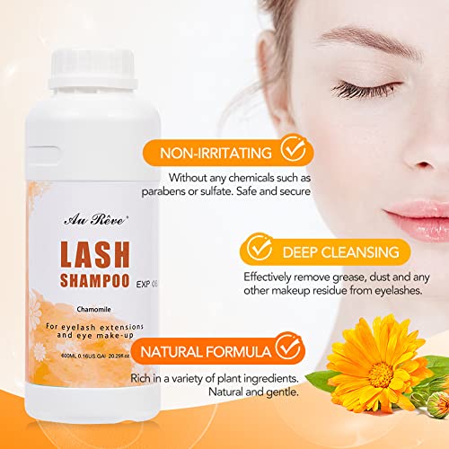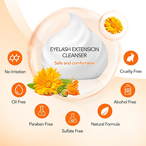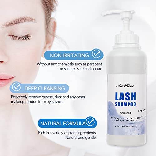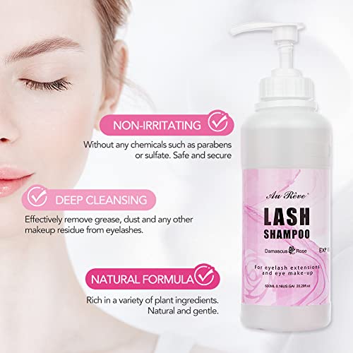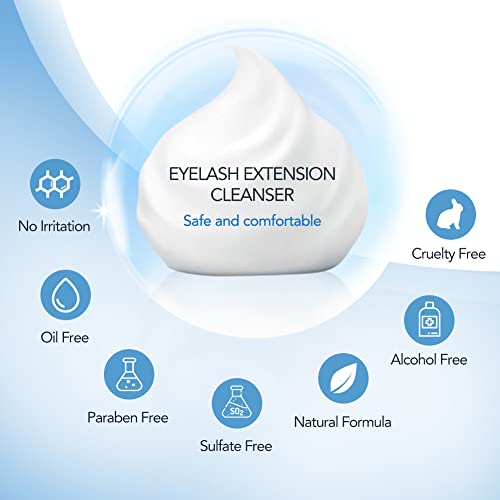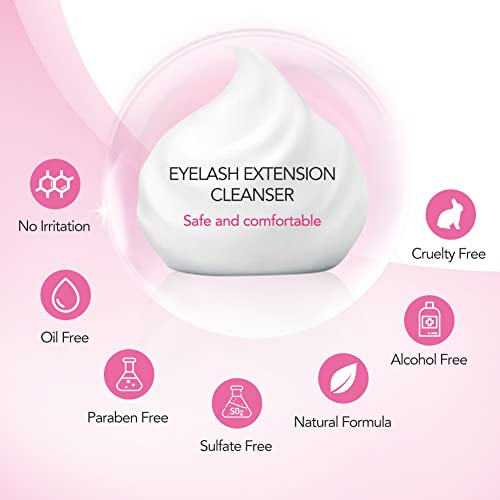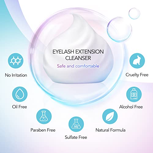 Eyelash Extension Cleanser Lash Shampoo Eyelash Extension Shampoo Lash Foam Cleanser Eyelid Cleanser for Makeup Remover Eyelash Care, Paraben & Sulfate Free for Salon and Home Use (Bubble Gum 600m