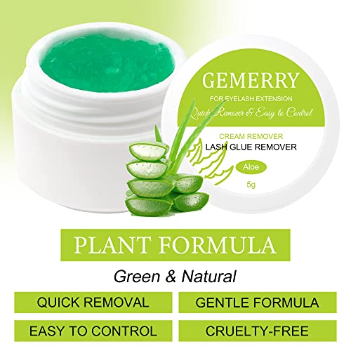 GEMERRY Lash Glue Remover 5g Cream Eyelash Glue Remover Gentle Formula Cream Remover for Sensitive Skin Fast Disslove Lash Remover for Lash Extensions(Aloe)