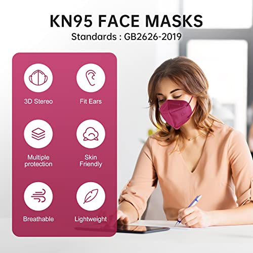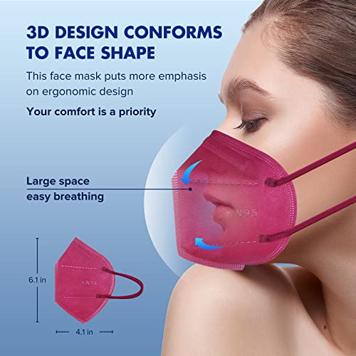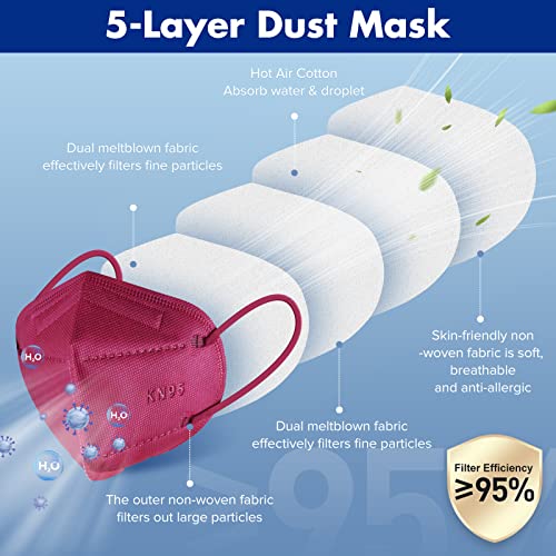 KN95 Pink Face Masks 20pcs 5-Ply Cup Dust Masks Filtration Efficiency ≥95% Multiple Colour Breathable Face Mask Individually Packaged