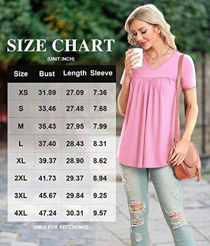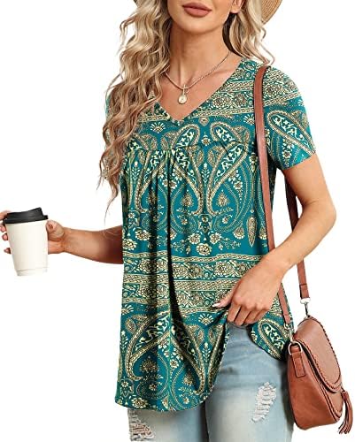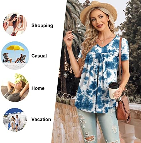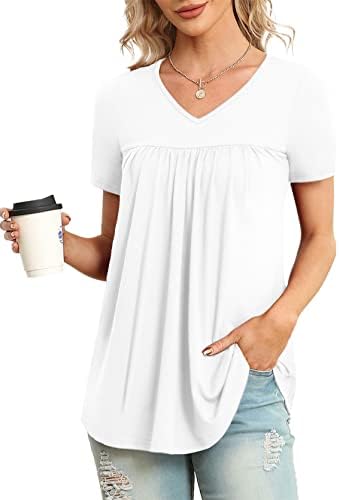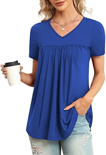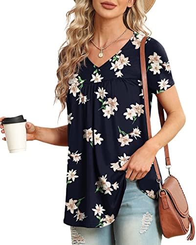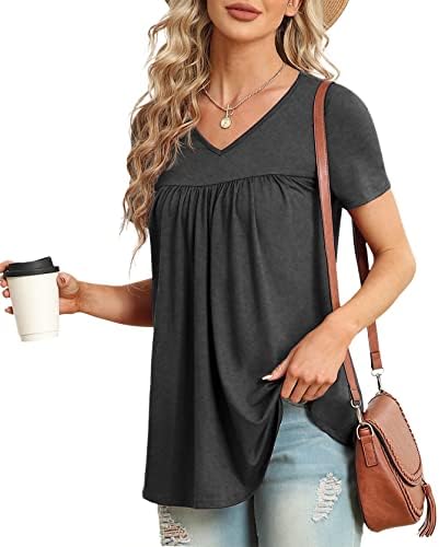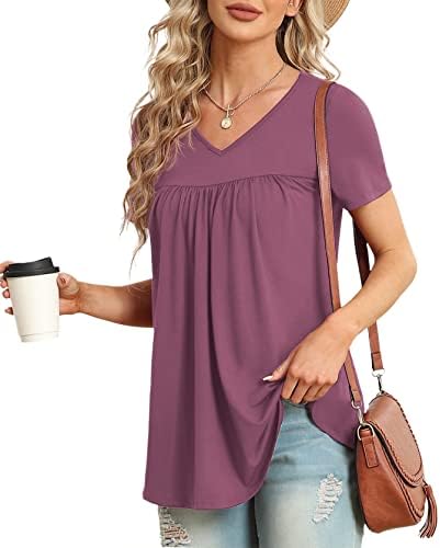 LAOLASI Womens Summer Tops V Neck Short Sleeve Casual Shirt Flowy Tunic Blouse