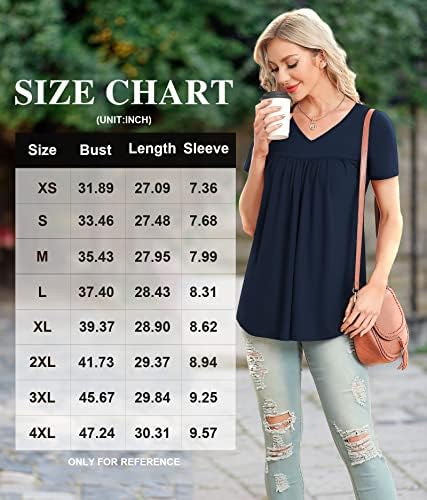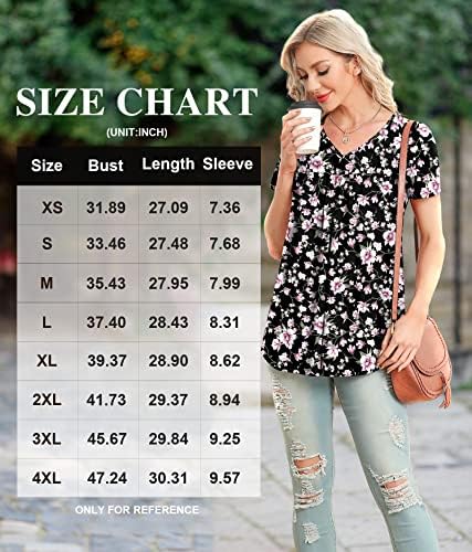 • 【 Chic Design 】 Casual style top, V Neck tunic, chest splicing, wrinkle design, short sleeve Tshirt, solid color and printing, horn shaped hem. This is the perfect balance of practicality and fashion. And with its loose and flowy design, it's great for hiding your stomach and creating a slimming effect.