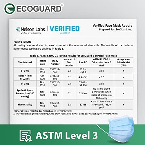 Made in USA ECOGUARD Adult ASTM Level 3 Disposable Face Masks by FriCARE, 3 Ply Protection Breathable 50 Pack Elastic Earloop