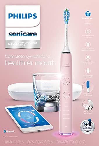 Philips Sonicare DiamondClean Smart 9500 Rechargeable Electric Power Toothbrush, Rose Gold, HX9924/61