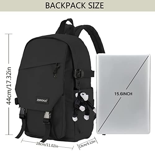 School Backpack Classic Basic Water Resistant Casual Daypack for Travel with Bottle Side Pockets Lightweight Bookbag College High School Bags For Boys Girls Black/White