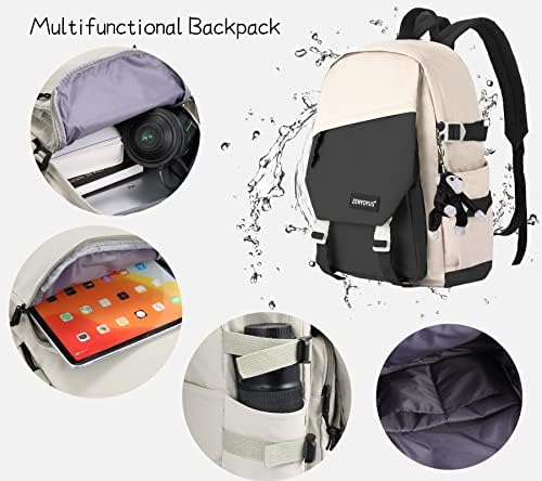 School Backpack Classic Basic Water Resistant Casual Daypack for Travel with Bottle Side Pockets Lightweight Bookbag College High School Bags For Boys Girls Black/White