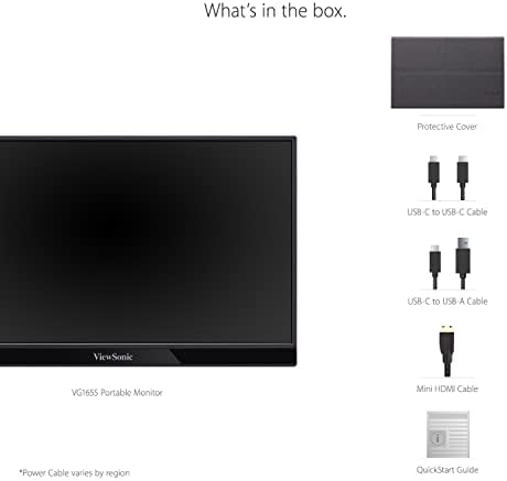 ViewSonic 15.6 Inch 1080p Portable Monitor with 2 Way Powered 60W USB C, IPS, Eye Care, Dual Speakers, Built in Stand with Cover (VG1655)