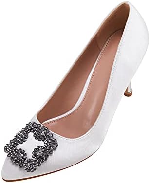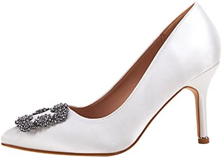 Women's Stiletto High Heel Pumps Classic Party Wedding Pointed Toe Pump Shoes with Jewel Buckle