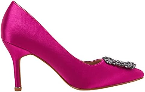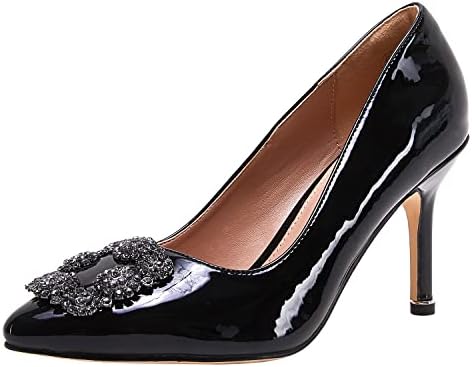 Women's Stiletto High Heel Pumps Classic Party Wedding Pointed Toe Pump Shoes with Jewel Buckle