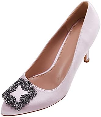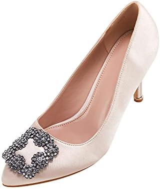 Women's Stiletto High Heel Pumps Classic Party Wedding Pointed Toe Pump Shoes with Jewel Buckle