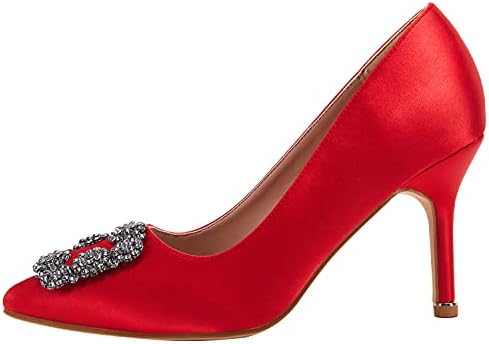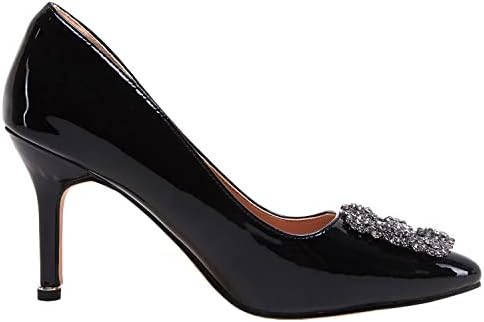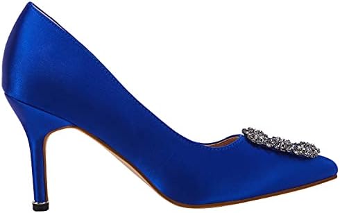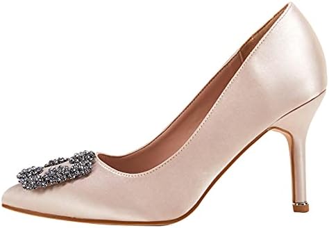 Women's Stiletto High Heel Pumps Classic Party Wedding Pointed Toe Pump Shoes with Jewel Buckle