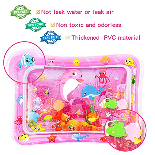 【Make Tummy Time Easier】: This tummy time water mat has bright and colorful seabed world patterns, cute and beautiful marine animals, which can make your baby love doing tummy time exercise. It can not only make baby exercise the muscles of the neck, shoulders, back and limbs, but also make the baby get sensory enjoyment. In addition, it can prevent flat head with baby