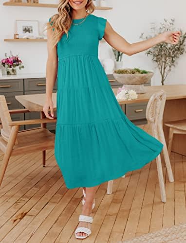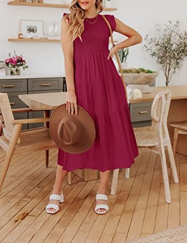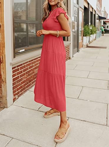 ZESICA Women's 2023 Summer Casual Flutter Short Sleeve Crew Neck Smocked Elastic Waist Tiered Midi Dress