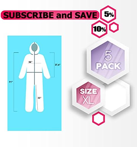 AMZ Medical Supply Hazmat Suits Disposable Coveralls. Pack of 5 Painters Suits 3X-Large Dust Protective Hooded Coveralls, Paint Suit, Protective Suits. 55G Microporous Coveralls for Spray Painting