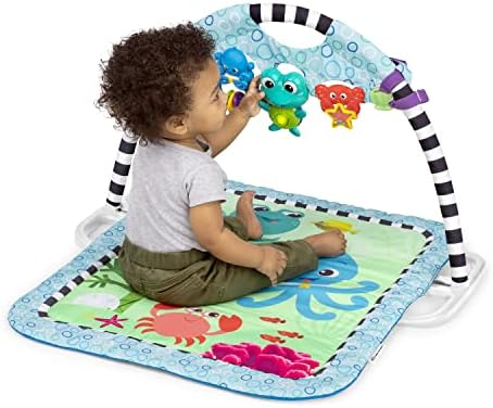 • 70 plus sounds and activities and 25 plus minutes of music for endless entertainment; includes 7 detachable toys: crinkle medallion, triangle rattle, BPA-free textured music note, flash cards, self-discovery mirror, piano toy and tummy time pillow