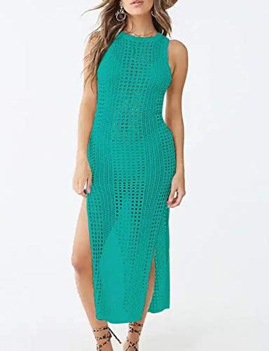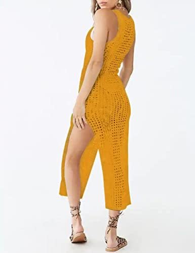 Bsubseach Crochet Cover Ups for Women Hollow Out Sleeveless Bikini Swimsuit Swimwear Side Split Long Beach Dresses