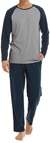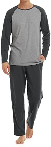 DAVID ARCHY Men's Cotton Raglan Sleepwear Long Sleeve Top & Bottom Pajama Lounge Set
