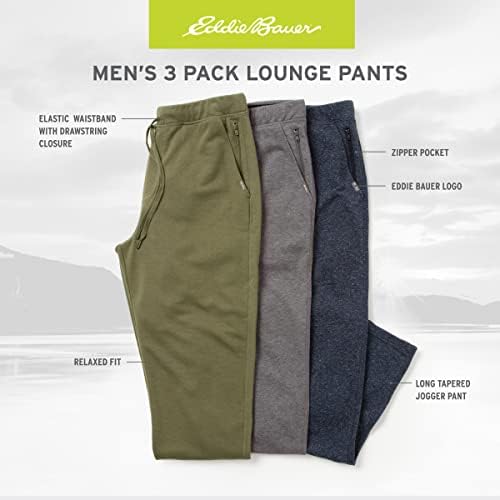 Eddie Bauer Herren 3er-Pack Pyjamahose - Komfort Strick Jogger Sleep Lounge Pyjama Hose mit Kordelzug und Taschen für Herren