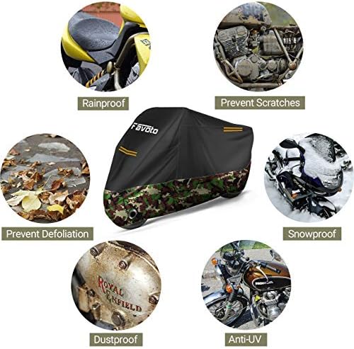 Favoto Motorcycle Cover All Season Universal Weather Quality Waterproof Sun Outdoor Protection Durable Night Reflective with Lock-Holes & Storage Bag