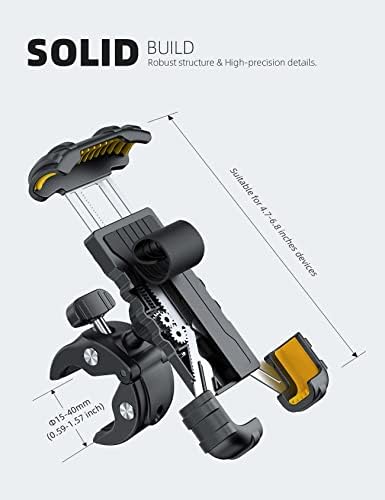 • 【 Wide Compatibility】 Universal bike cell phone stand for 4.7 and 6.8 inches with thickness up to 15mm (including phone case), like iPhone 14, iPhone 14 Plus, iPhone 14 Pro, iPhone 14 Pro Max, iPhone 13 Pro Max, iPhone 12 Pro Max Mini Xs XR X 8 Plus 7 6s 6, Galaxy S10 + S10e S9 S8, Note 9 8 7, Huawei, Nexus, Motorola, Pixel, Oneplus, LG ThinQ and other Android cell phones.