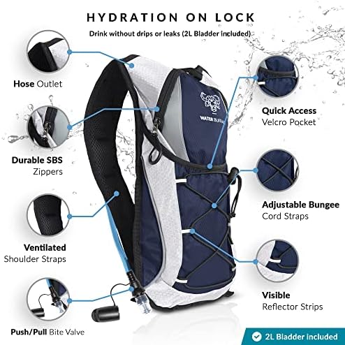 Water Buffalo Hydration Backpack - Lightweight Hydration Pack with 2L Water Bladder - Water Backpack for Hiking, Running, Biking, and Raves - Road Runner 12L Hydropack Backpack